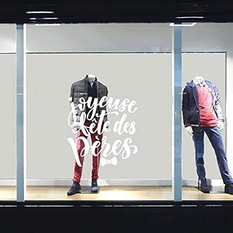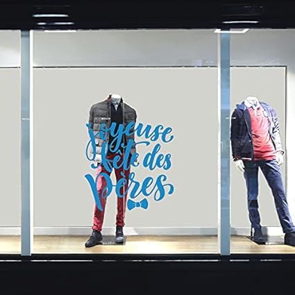 Sticker Joyeuse Fête des Pères - Dimensions 58 x 58 cm - Coloris Bleu Clair Brillant - Autocollant Vitrine - Fête des Pères