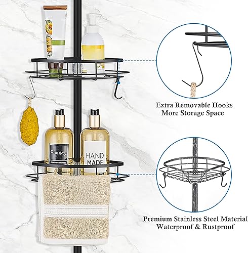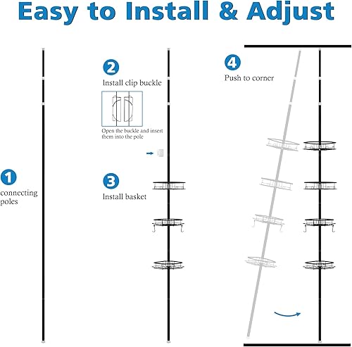 SWOYYU Étagère de Douche Télescopique Étagère d'Angle Douche Sans Percage Métal Rangement de Salle de Bain avec 4 Paniers pour Baignoire 85-325CM Gris