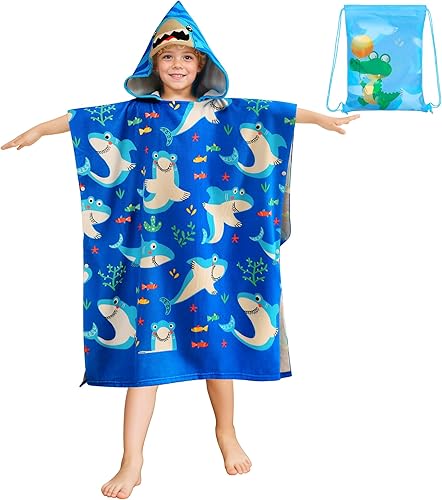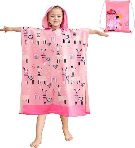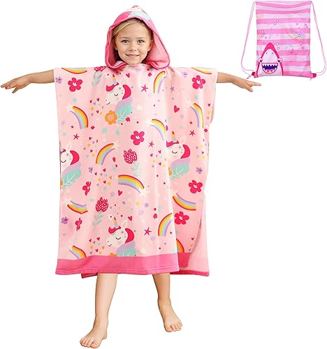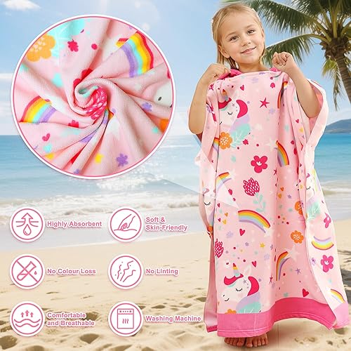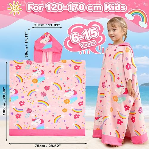 FILOWA Poncho de Bain Filles Enfants Microfibre Serviette de Bain à Capuche Plage Cape de Bain 75 * 180cm Grande Serviette Poncho Rose Licorne Serviette de Plage Absorbante Peignoir pour 6-15 Ans