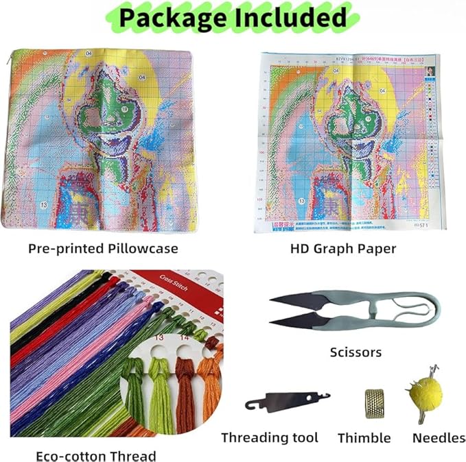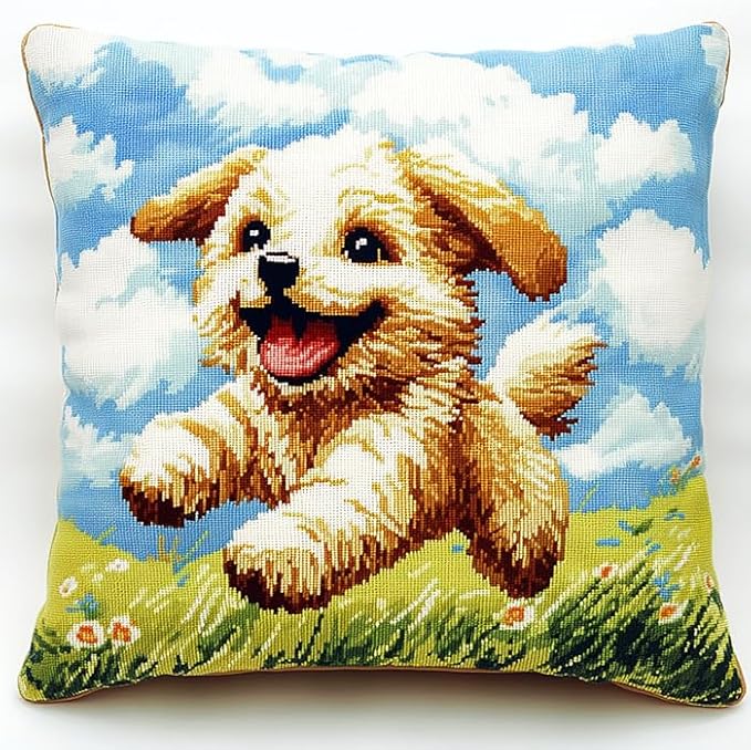 Wallphantom animal Kit Coussin Point de Croix,Chiot sur l'herbe,Coussin à Broder Artisanal,45x45cm Points De Croix Pour Adultes,Coussin avec Fil et Aiguille à Broder