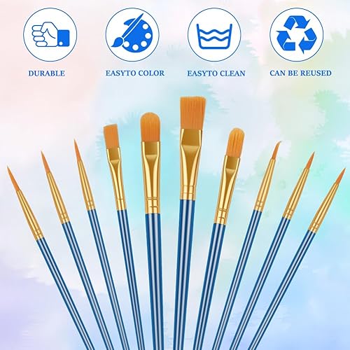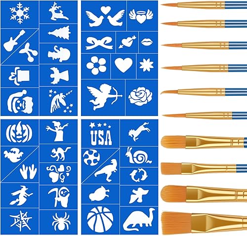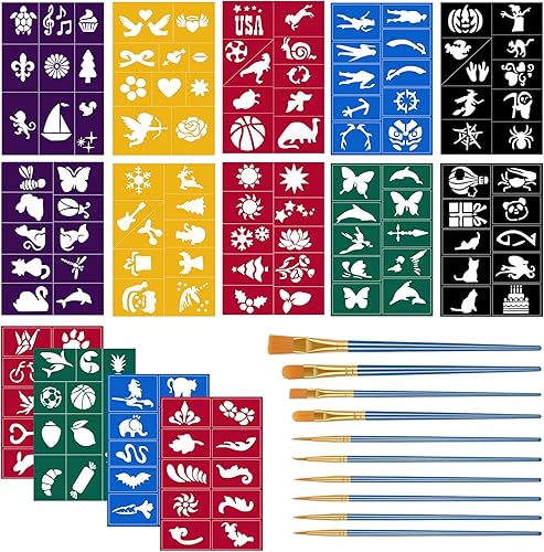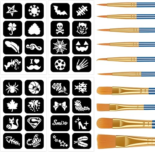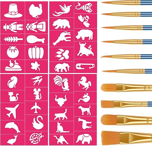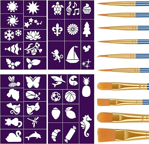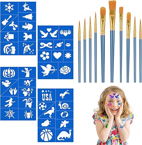 Alaoo 10 PCS pinceaux de Peinture en Nylon,BrosseAcrylique,Pinceaux peinture pour le Visage,Contient 4 Violet Pochoirs,pour Peinture à l'huile, Aquarelle et Gouache,pour Enfants et Adultes