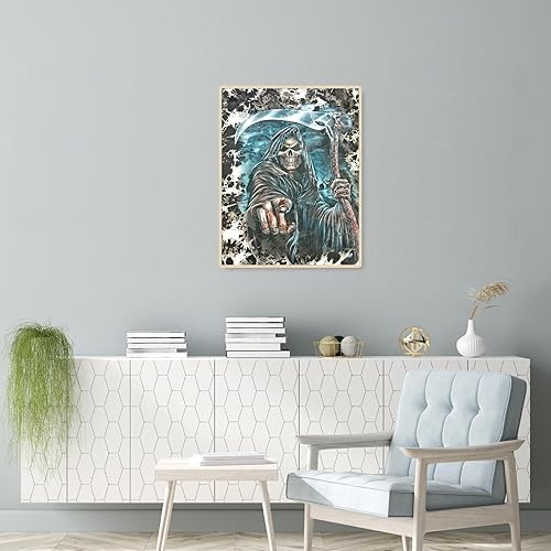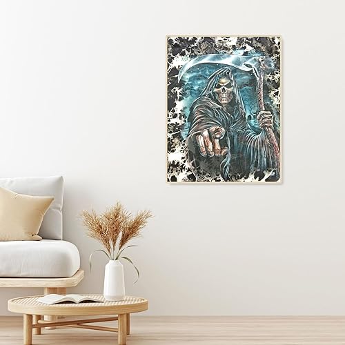 TDFERAN/40x50CM 5D DIY Diamond Painting Kit Complet Mort Démon,Broderie Diamant Kits Carré, Diamant Strass Cristal Point de Croix Crâne Skull pour Murale Décoration Enfants Adultes