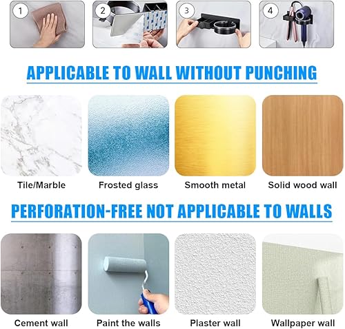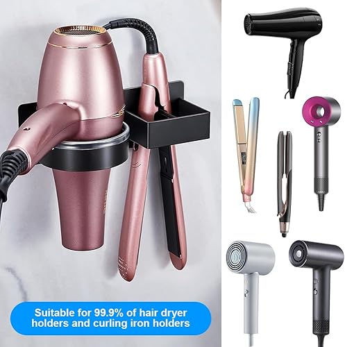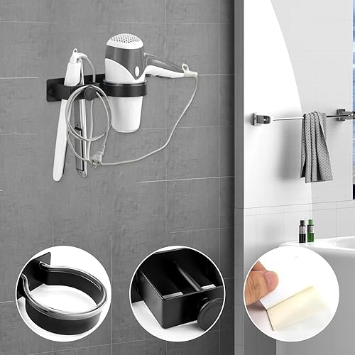 SKIKHN Support Seche Cheveux, Porte Seche Cheveux et Lisseur, Porte Seche Cheveux sans Percage, Porte Seche Cheveux Mural a Adhésif/Vis, Support Seche Cheveux sans Percage pour Salle de Bain, Hôtel