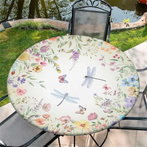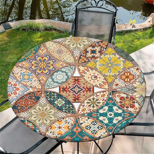 artslion Nappe Ronde d'extérieur avec Bande élastique Ø 44in-110cm Nappe de Jardin élastique avec Motif Motif Convient aux Tables de 95-105 cm