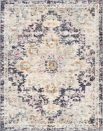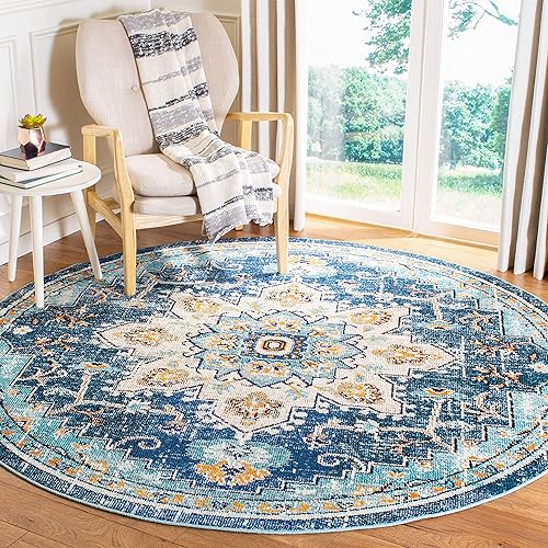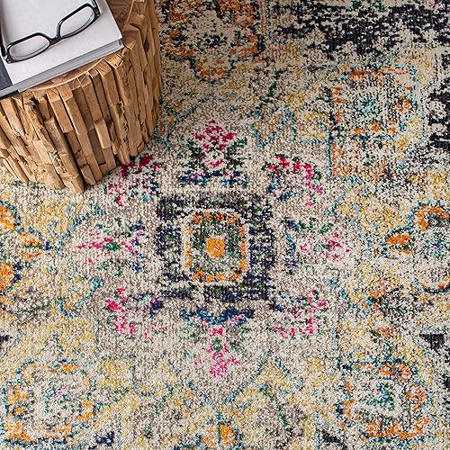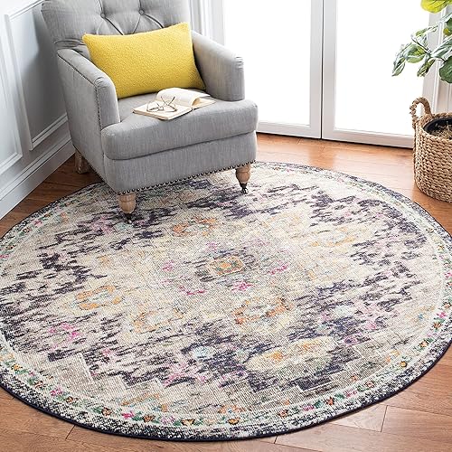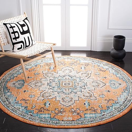 Safavieh Tapis Boho pour Salon, Salle à Manger, Chambre à Coucher - Madison Collection, Tapis à Poil Court, Noir et Or, 122 x 122 cm