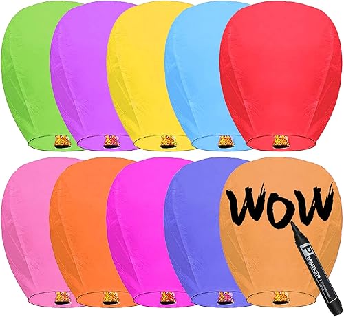 10 pièces Lanterne Volante 100% biodégradable Papier, Multicolore lampion Chinoise Volant, idéal pour Vos événements Mariage fêtes Nouvel an