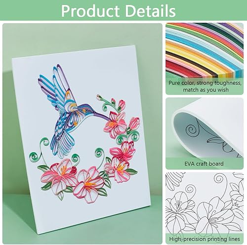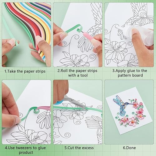 PH PandaHall Kit de Quilling en Papier Outil de Quilling de Fleurs et de Colibris Fournisseur de Bandes de Papier Modèle de Quilling Planche Modèles de Quilling pour L'Artisanat pour Débutants