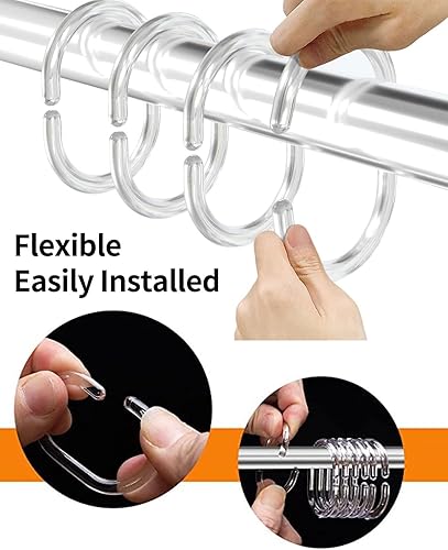 HSIXHAF 48 pcs Anneau De Rideau Transparent, Anneau De Douche en Plastique, Anneau De Rideau De Douche en Forme De C, Anneau De Suspension De Rideau, Crochets pour Rideaux de Salle de Bain