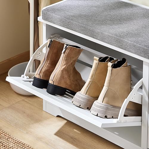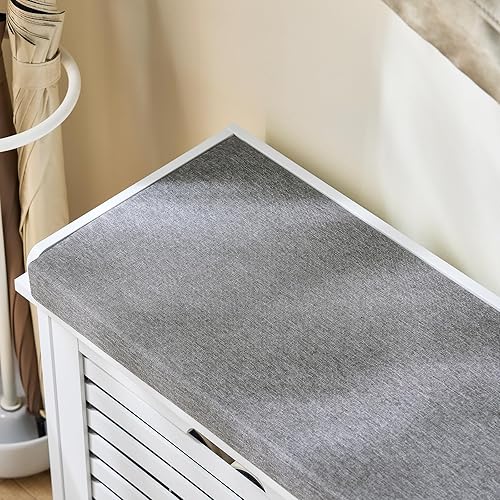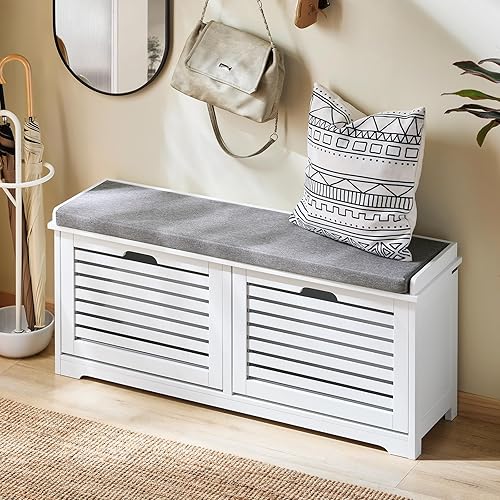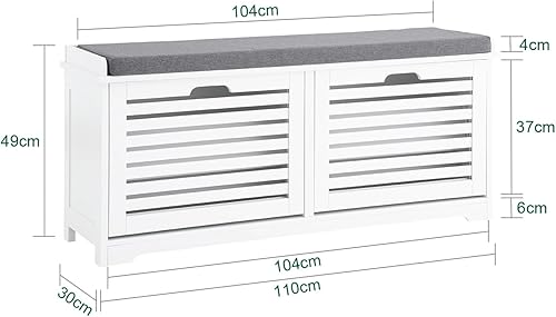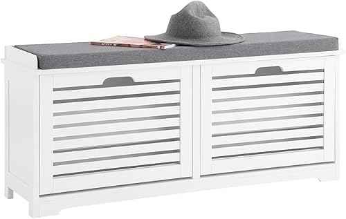 SoBuy Banc Chaussures, Rangement pour Chaussures, Armoire à Chaussures, Meuble d'entrée, Coffre avec 2 Abattants et 1 Coussin, pour Entrée, Couloir, Chambre et Salon, Blanc, L110xP29xH49 cm, FSR184-W