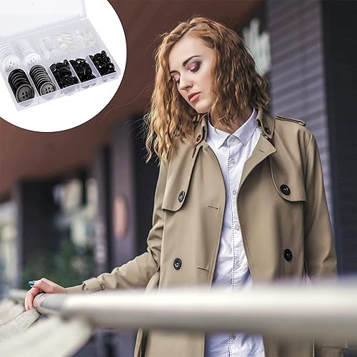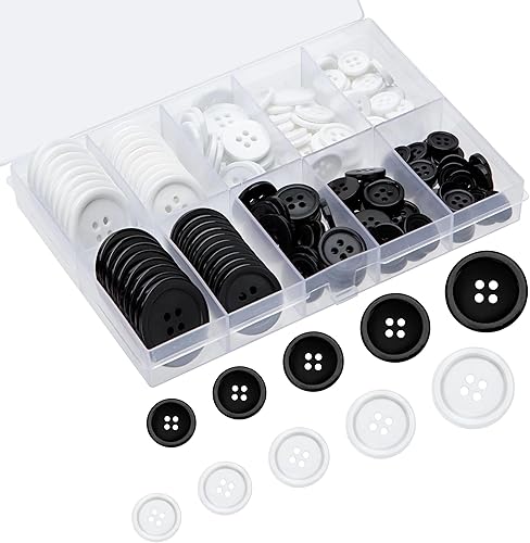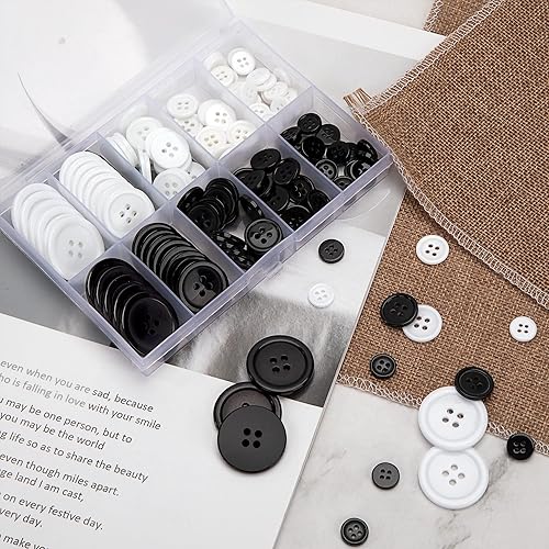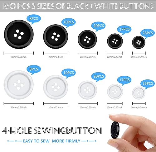 160 Pièces Boutons Ronds en Résine, Boutons de Chemise 4 Trous avec Boîte de Stockage pour Vêtements, Coudre, d'Artisanat Bricolage, 5 Tailles Différentes (Noir et Blanc)