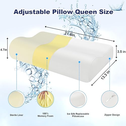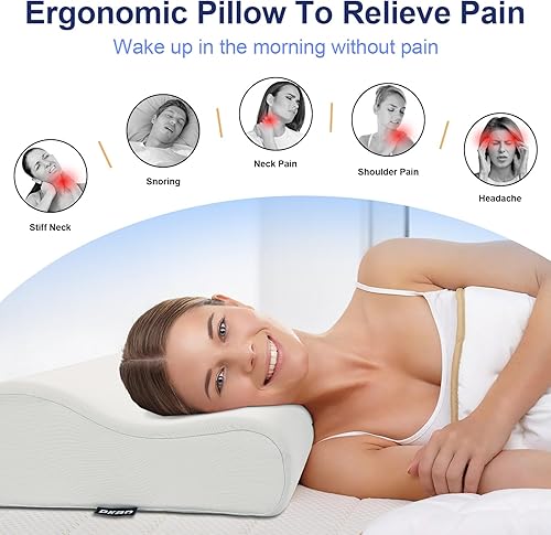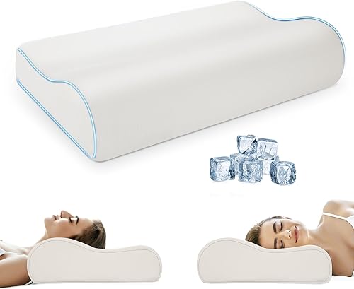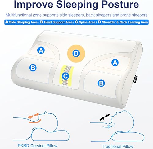 PKBD Oreiller en Mousse à Mémoire de Forme avec Taie d'oreiller(Soie Glacée),Oreiller orthopédique Ergonomique,Oreiller Profilé pour Dormeurs sur Le Côté, Le Dos et Le Ventre