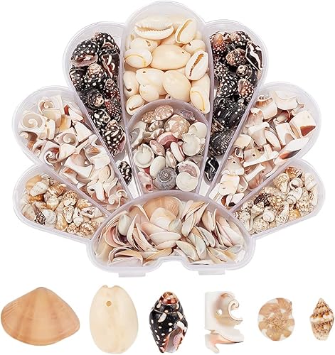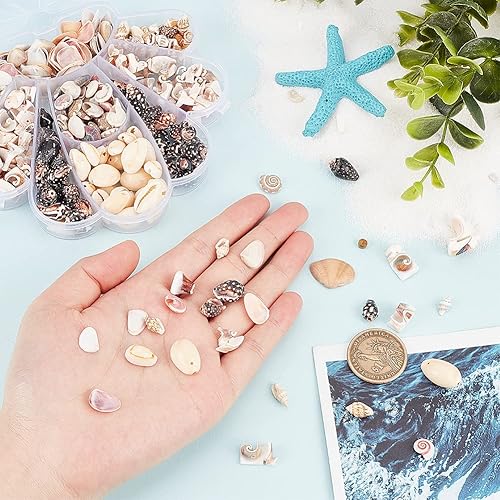 PH PandaHall 370pcs Perles de coquille en spirale naturs, 5~16 mm 6 modèles Pets coquillages Coquillages en spirale océanique Coquillages miniatures percés/non percés pour bijoux