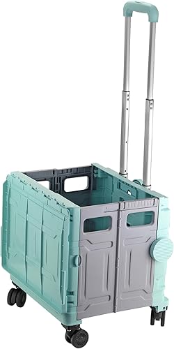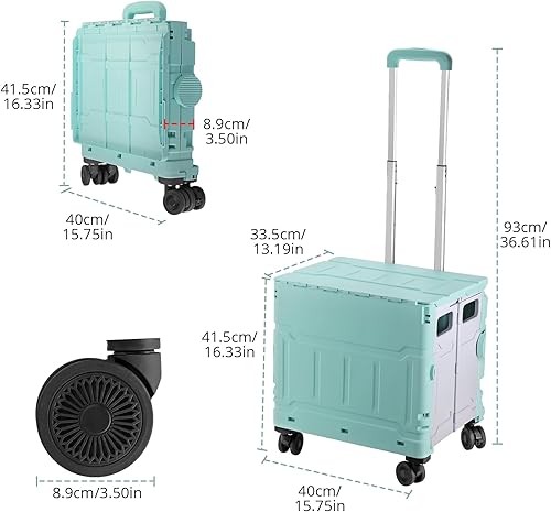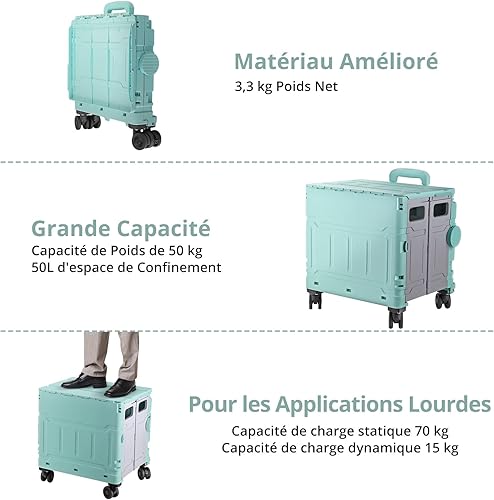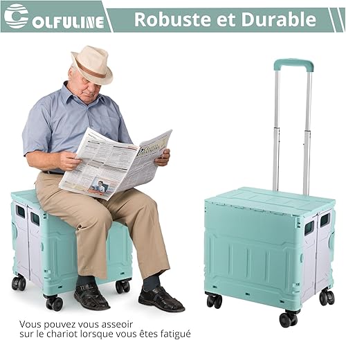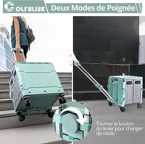 COLFULINE Chariot de Courses Pliable 50kg Chariot de Rangement Pliable à roulettes avec Poignée Télescopique 4 Roues de Rotation 360° Boîte de Rangement pour Voyage, Shopping, Déménagement