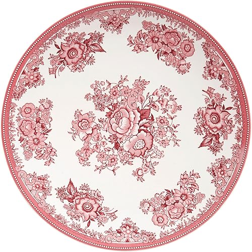 GENEVIEVE LETHU 539249 Assiette à Dessert en Grès Blanche et Rose Ø 21 cm - Collection Toile de Printemps - Assiette en grès au Charme Classique, au décor Floral délicat