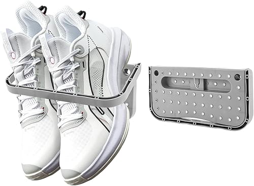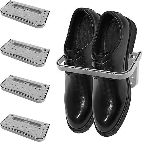 LDXDRU Lot de 5 supports à chaussures muraux pliables en plastique - Sans perçage - Pour ranger les chaussures - Pour camping-car, porte d'entrée - Gris
