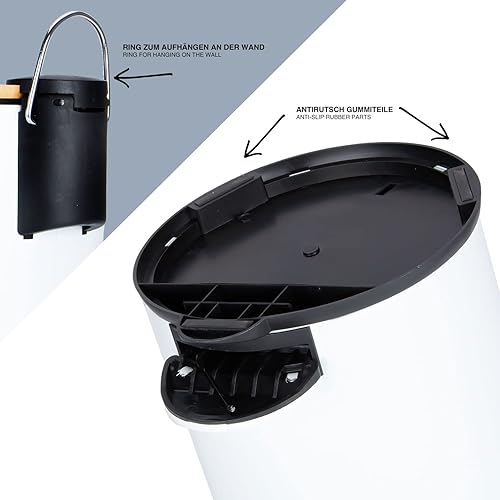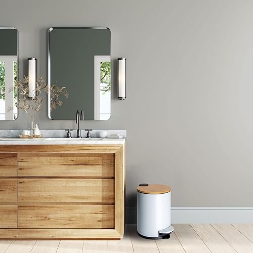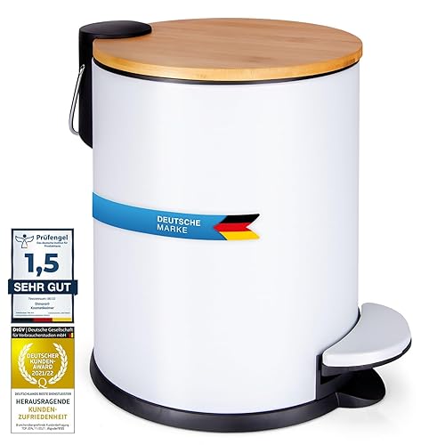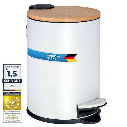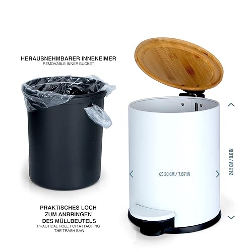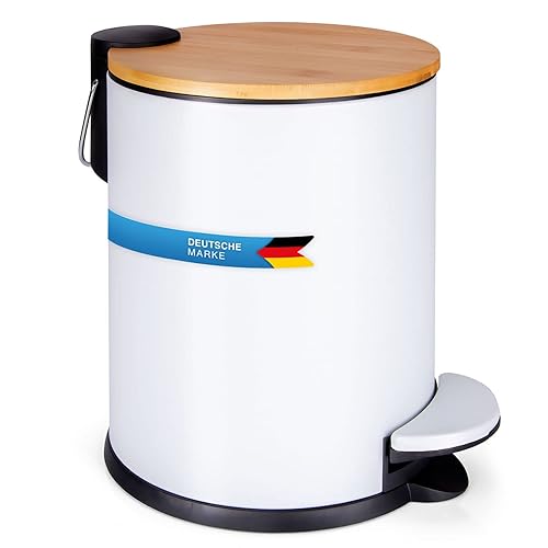 Dimono® Cosmétique Poubelle de salle de bain Poubelle à pédale 3 et 5 litres avec couvercle en bambou et marche antidérapante (5 litres plat)