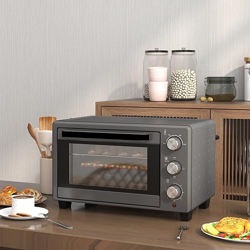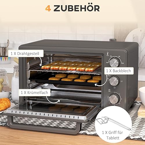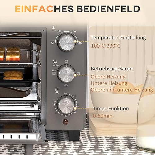 HOMCOM Mini-four 21L 1400W 60 min minuterie, petit four avec température réglable de 100 °C à 230 °C Temps de cuisson, mini-four avec plaque de cuisson, support en fil métallique, four de table en