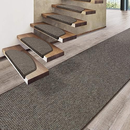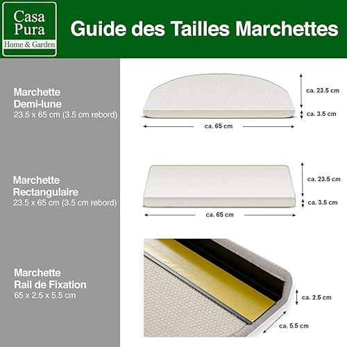 casa pura Marchette pour Escalier - Nez de Marche | Tapis pour Escalier | Moquette Poils Courts Antidérapante | 2 Formes | Carlton - Marron, Rectangle (1 pièce)