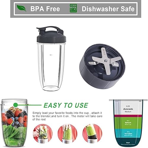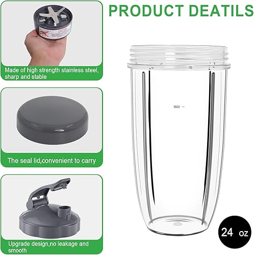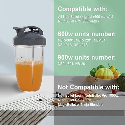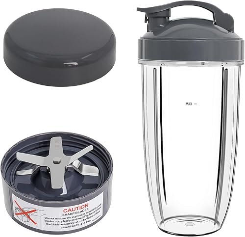 Poweka Tasse de rechange compatible avec la machine NutriBullet 600 W Pro 900 W NB-101S NB-201, couvercle à rabat, couvercle hermétique et lame d'extraction Gris 710 ml