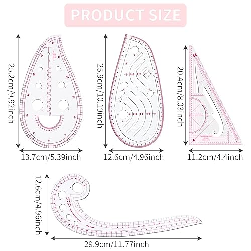 Weenwill Regle Couture,4 PCS Différentes Formes et Mesures,Règles Métriques Transparentes,Français Règle de Courbe pour Couture,La Confection de Vêtements,Conception de Patrons,L'outil de Tailleur