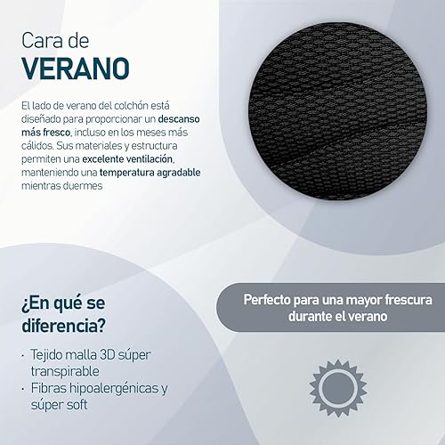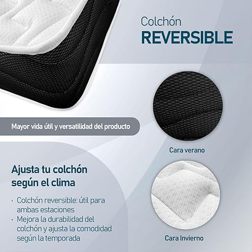 amuéblate online Matelas viscoélastique Venus réversible (Hiver-été), fermeté Moyenne à élevée, épaisseur 30 cm, Anti-acariens, antibactérien et hypoallergénique, 90 x 190 cm