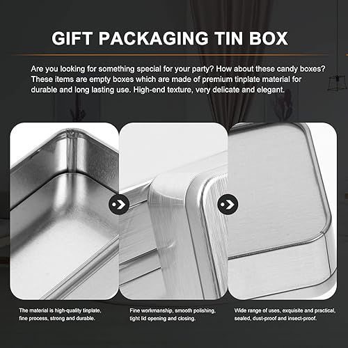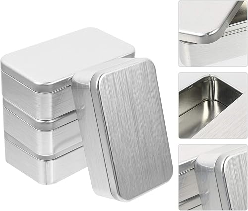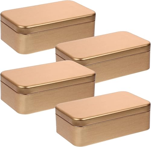 DOITOOL Contenants de 4 Pièces en Métal Boîte Rectangulaire en Métal à Charnière Vide Boîte de Rangement Portable avec Couvercle Petite Boîte pour Organisateur Domestique (4. 32X2. 55X1.