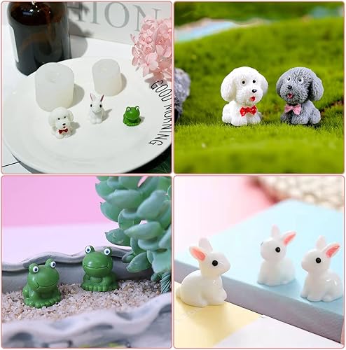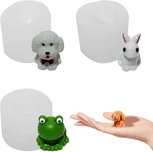DeryArcle 3 Pièce Mini Moule Resine Animaux, Moules Lapin Silicone 3D Moulle de Coulée Résine Grenouille Moulage Chien pour Bricolage Savon Bougie Décoration
