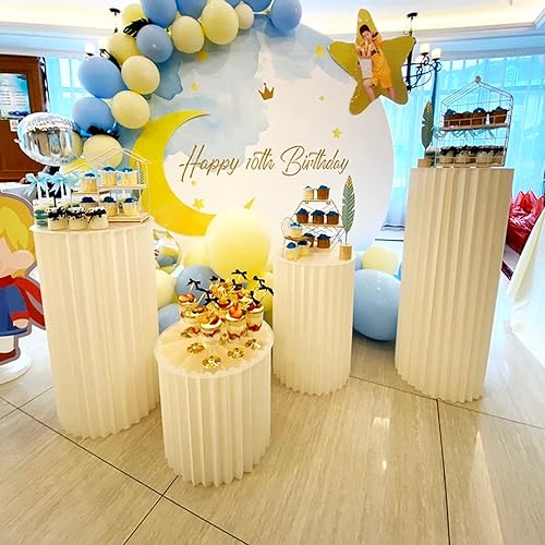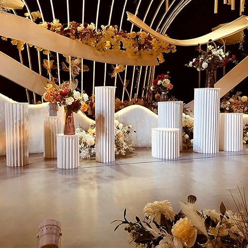 LUYAYW 5pcs socles d'affichage de colonnes de Papier Pliables, Supports de piédestal de Cylindre pour la décoration de Tables de fête d'anniversaire de Mariage(100cm)