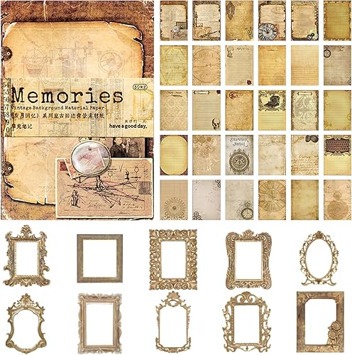 JSTHHTT Lot de 60 feuilles Papier de Scrapbooking Vintage, 10 Pcs Papier Dentelle Scrapbooking, Papier Journal Vintage Scrapbooking, pour Cartes de Vœux DIY, Albums Photo, Scrapbooking