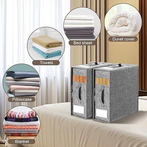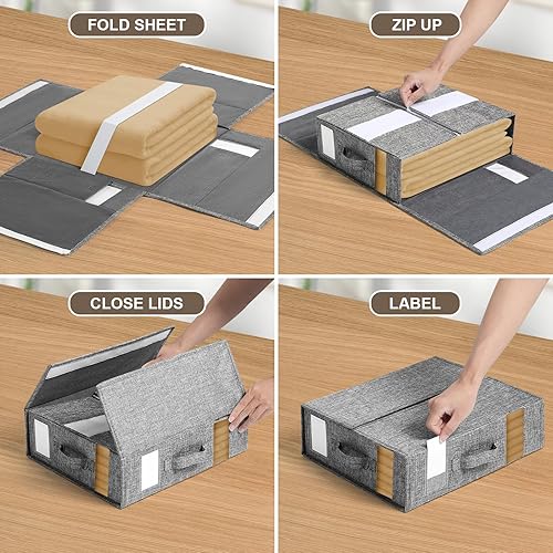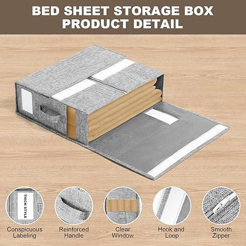 XGMZTN Lot de 3 Boite Rangement Drap de Lit, Linge housse de Rangement Drap Placard, Organisateur de Drap Pliable, Rangement Parure de Lit, Gris