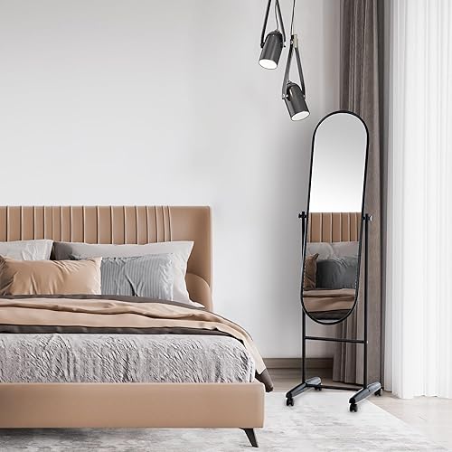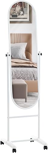 CLP Miroir sur Pieds Elégant Nane avec roulettes I Miroir sur Pied Chic avec Cadre en Métal Design I Miroir Debout avec roulettes, Couleur:Blanc