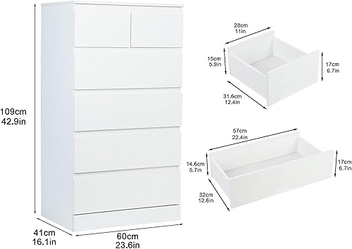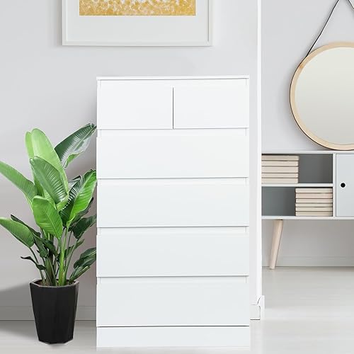nawoefii Commode Chambre, Commode avec 6 Tirores en Bois Commode Blanche pour Chambre à couchers Marible Meuble de Rangement pour Le Salon, Chambre, Couloir Blanc