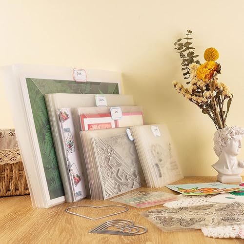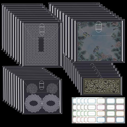 CYFUN DESIGN Lot de 40 Pochettes de Rangement pour tampons et Matrices 48 étiquettes Autocollantes 4 Tailles de Rangement pour Scrapbooking