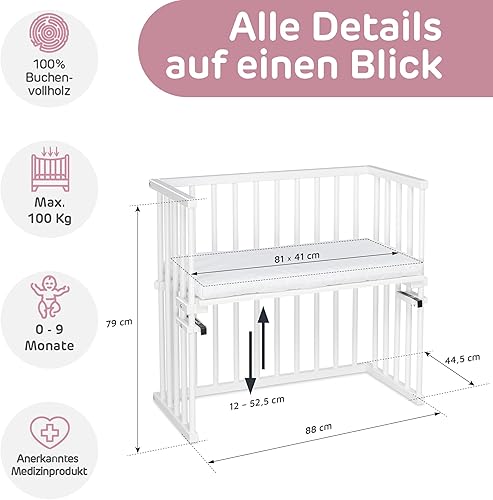 babybay Original lit cododo en Bois de hêtre Massif/Compact et modulable/Hauteur du lit réglable en continu/lit bébé évolutif (Naturel Non traité) / avec Matelas