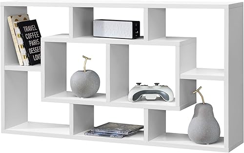[en.casa] Meuble Mural Design Étagère Flottante Stylée 8 Compartiments de Rangement Capacité de Charge 9 kg Panneau de Particules Mélaminé 85 x 16 x 48 cm Effet Béton