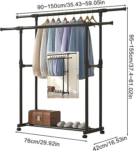 ZHUMCCY Porte Vêtements Pliable Robuste, Portant À Vêtements Portable Sur Roulettes Porte Vêtements Autoportant Support Pour Vêtements À Suspendre Pour Manteaux, Robes, Chaussure