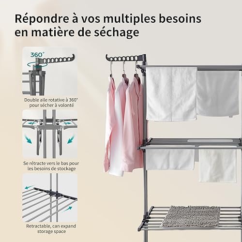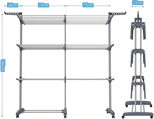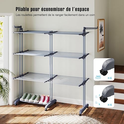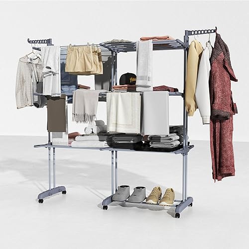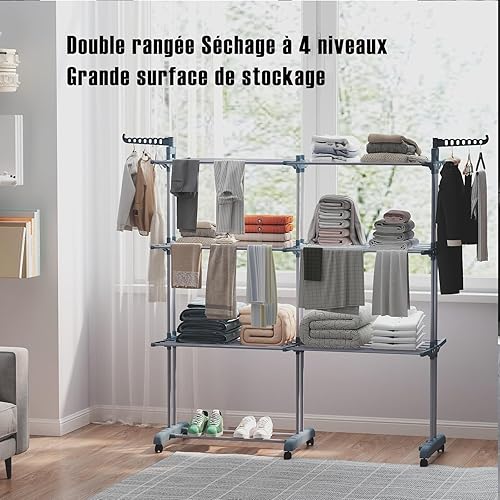Fabulcozy Séchoir à Linge Pliable Étendoir à Linge 4 Niveaux avec roulettes Utilisation intérieure et extérieure (Grand)