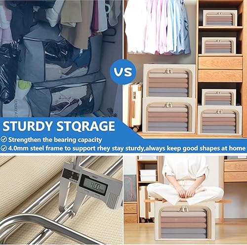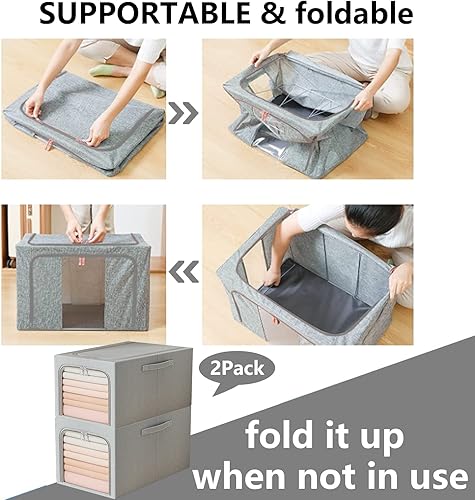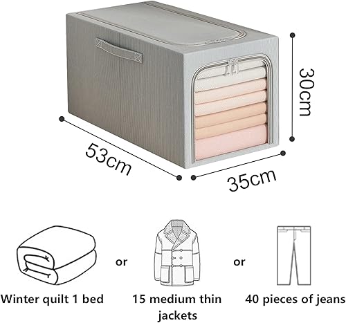 Lnvocn Lot de 3 Sac de Rangement Vetement, Rangement pour Vêtements et Penderie, Couette, Draps - Stable – Sac Rangement Vêtements Pliable avec Cadre Métallique - Boîtes Vêtements Empilables (Gray)
