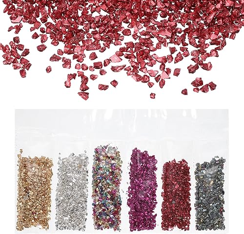 QUARKZMAN Verre A Écraser Élevé Lustre Éclats 1-3mm Cassé Verre Pièces Irrégulier Verre Métallique Cristal Puces pour Ongle Arts Artisanat DIY Vase, 30g, Multicolore