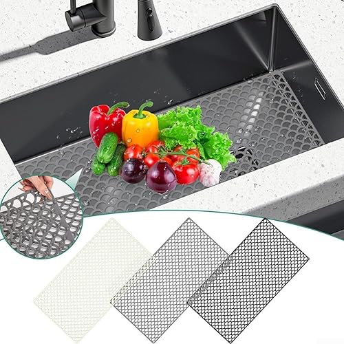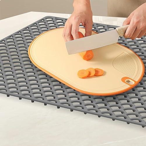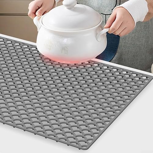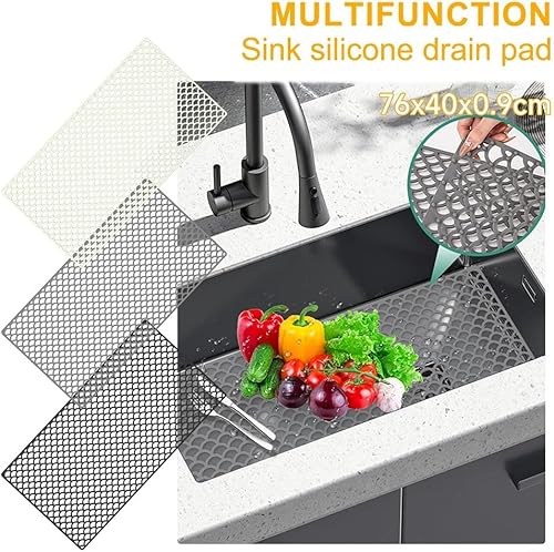 Tapis d'évier de cuisine en silicone 75 x 40 cm - Grande taille - Antidérapant - Résistant à la chaleur - Avec trous d'aération - Blanc