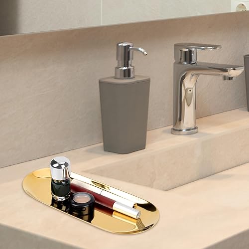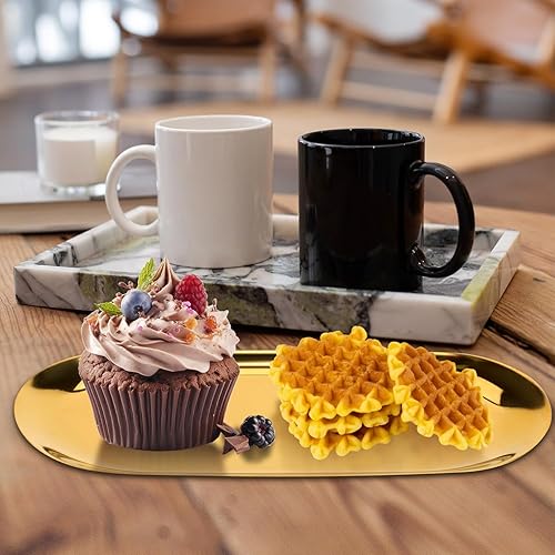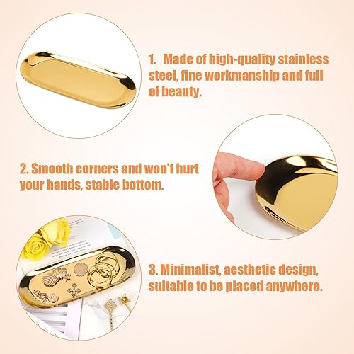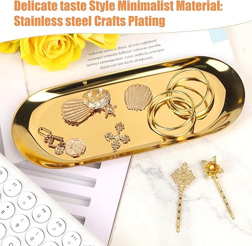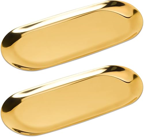 2 Pièces Plateau Décoratif Doré, Plateau de Vanité Plateau à Bijoux en Acier Inoxydable Organisateur de Maquillage Plateau d'Assiettes pour Salle de Bain Comptoir Commode, Ovale