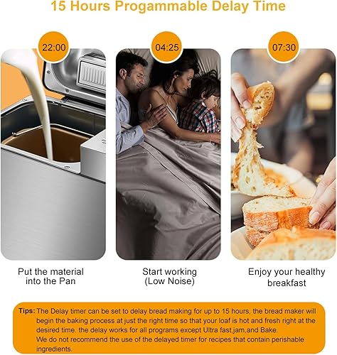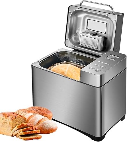 Machine à pain 19 en 1, entièrement automatique, avec minuterie, maintien au chaud, 3 tailles de pain, en acier inoxydable, ajout automatique d'ingrédients