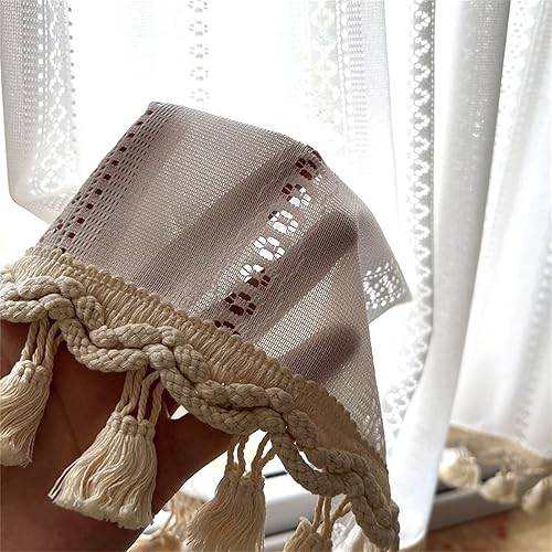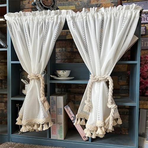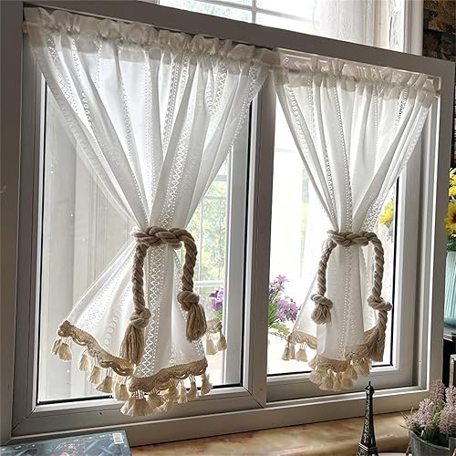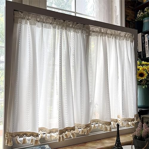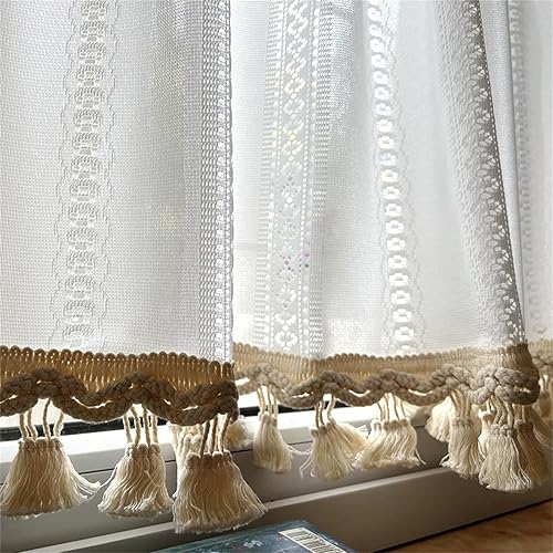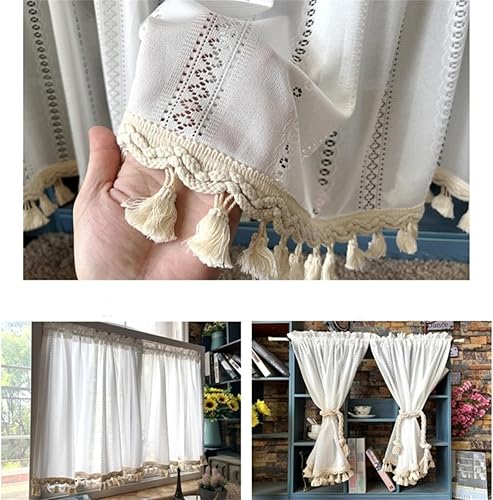 champracer Rideau brise-bise - Style bohème - Court - Style maison de campagne - Vintage - Pour bistrot - Petit rideau de fenêtre de cuisine - Avec pompon - 1 pièce - 100 x 30 cm (l x H)