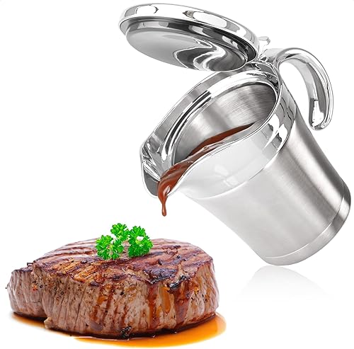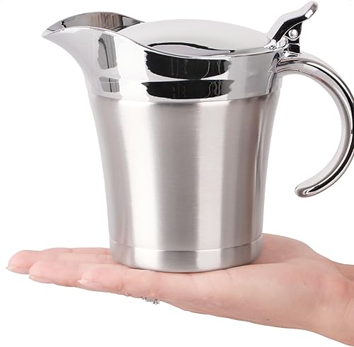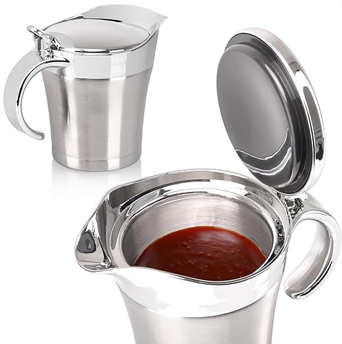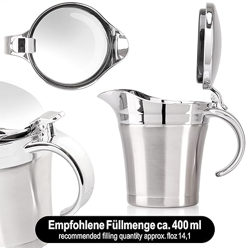 COM-FOUR® Thermo saucière - saucière en acier inoxydable à double paroi - récipient à sauce isotherme - garde les aliments au chaud ou au frais - va au lave-vaisselle (couleur argent - 400ml)