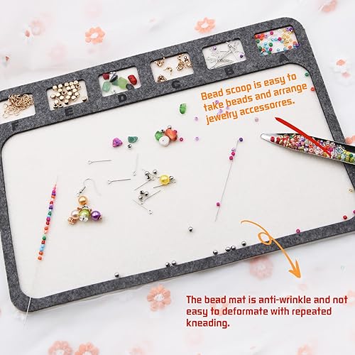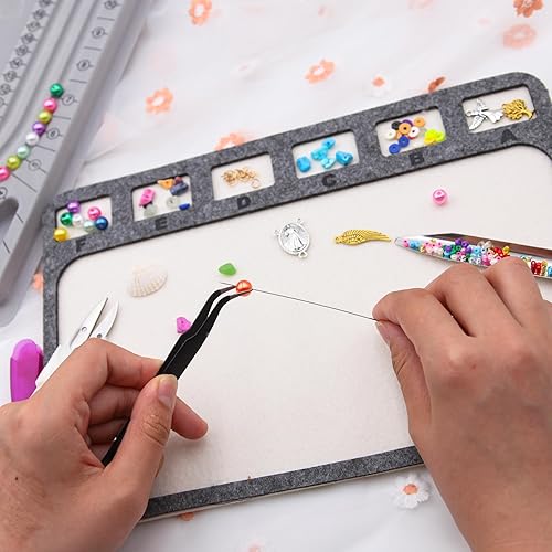 EuTengHao Planche de design de perles avec kit de tapis de perlage, gris floqué, fil de bijoux, aiguilles à perles, plateau de rangement de bijoux pour la création de bracelets, colliers et autres