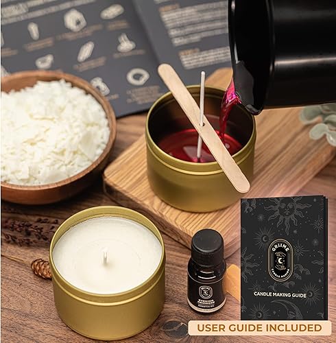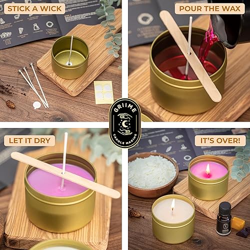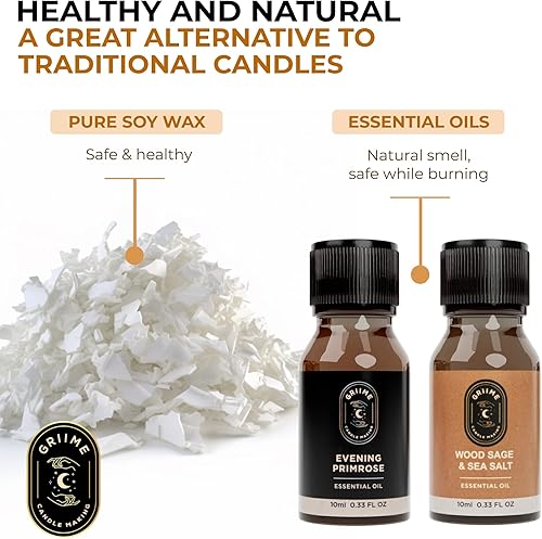 GRIIME Kit Fabrication Bougie | Kit Bougie a Faire Soi Meme Adulte I Cire soja Bougie, mèches, huiles essentielles, autocollant, thermomètre, pot, colorant bougie | Coffret Bougie I Coffret cadeau