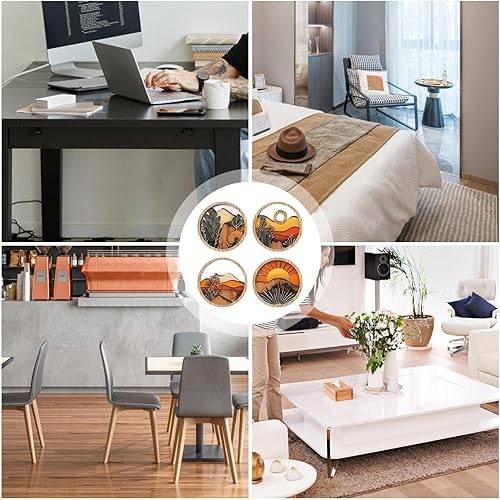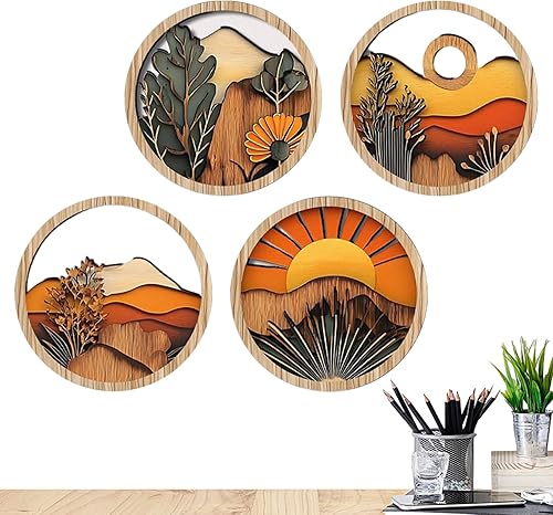 Zegaqae Décor Mural En Bois Boho,Design Éthnique Contemporain | Lot de 4 Cadres Ronds en Bois 20x20 cm avec Motifs Géométriques pour Appartement Entrée Couloir Cheminée