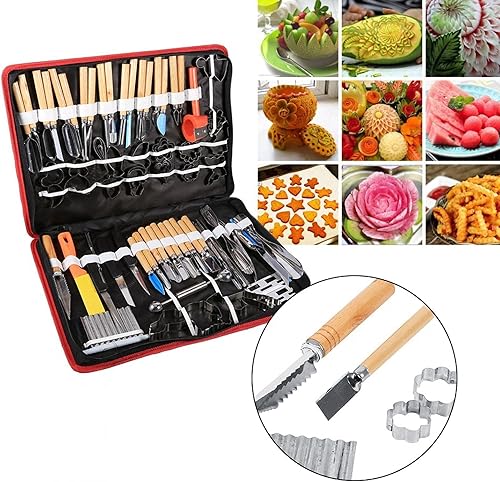 80 Pcs Kit D'Outils de Sculpture Culinaire, Kit outils de cuisine D'épluchage de Sculpture Culinaire pour la Garniture de Fruits Légumes avec Un Sac de Transport pour le Chef Bricolage Art Sculpture