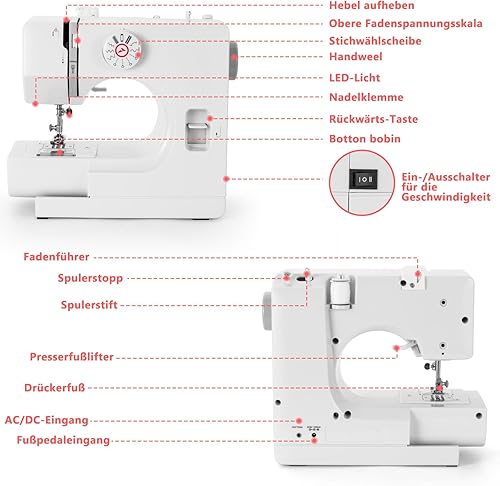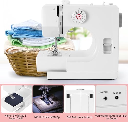 Machine à coudre mécanique pour débutants et débutants, 12 programmes de points, bras libre, lumière de couture et démarreur électrique avec pédale et kit de couture (dernière version lisse)