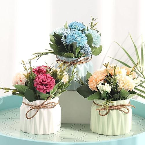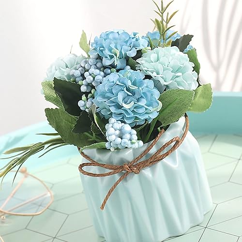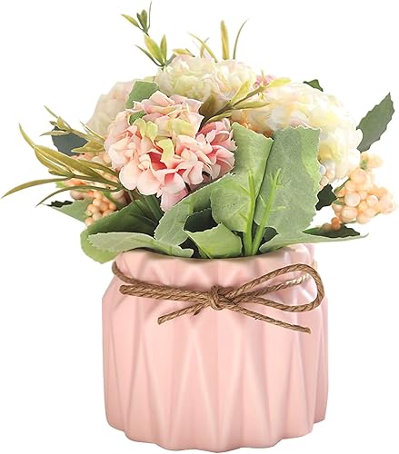 Cyrank Décor de Fleurs en Pot, Fausses Fleurs avec Vase Bouquet de Fleurs artificielles en Pot Hortensia avec Vase pour Maison Ferme Bureau Rebord de fenêtre centres de Table décor d'étagère(Rose)